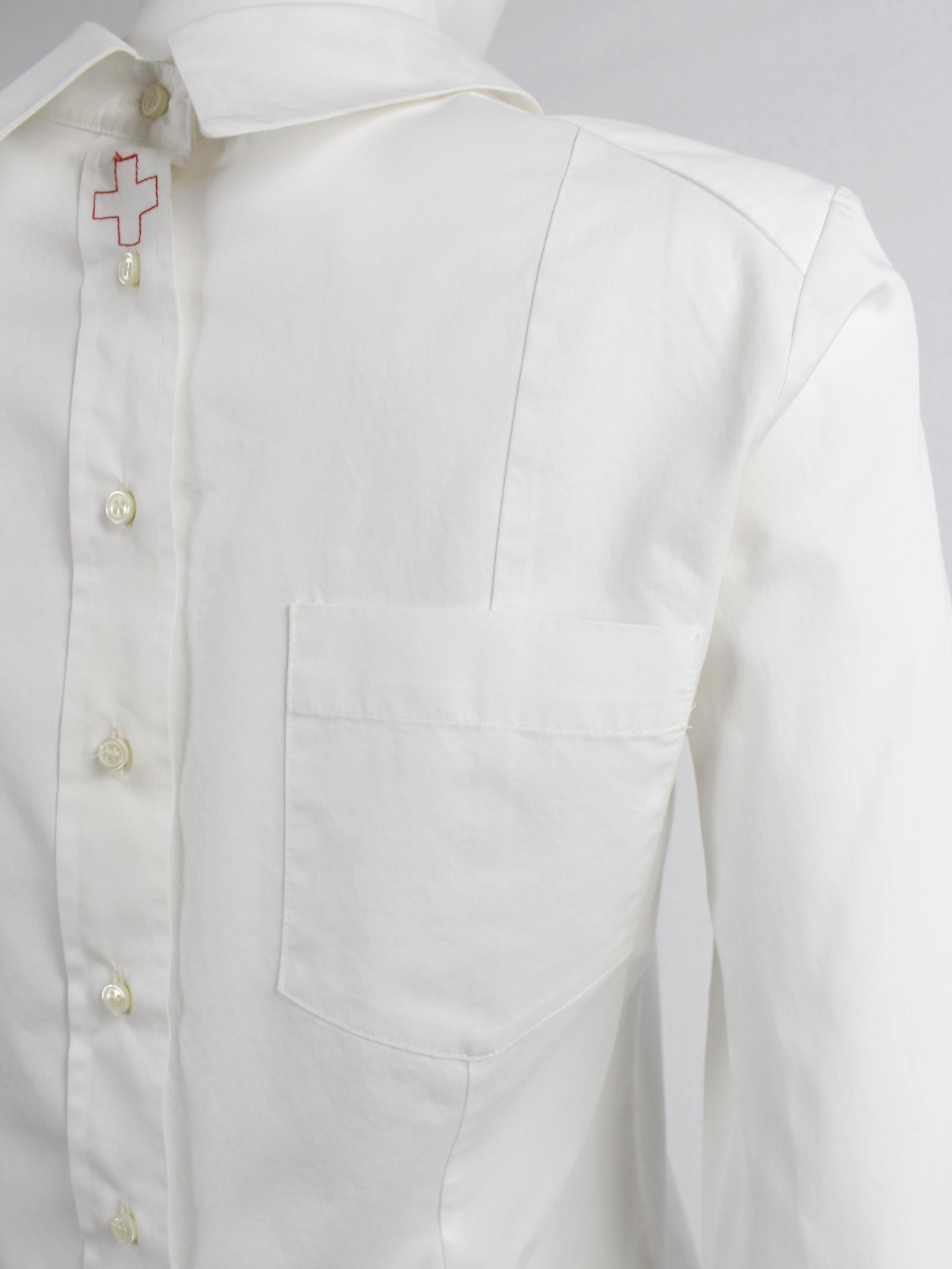 Maison Martin Margiela white cardigan with wavy stretched out trim and torn neckline — spring 2007